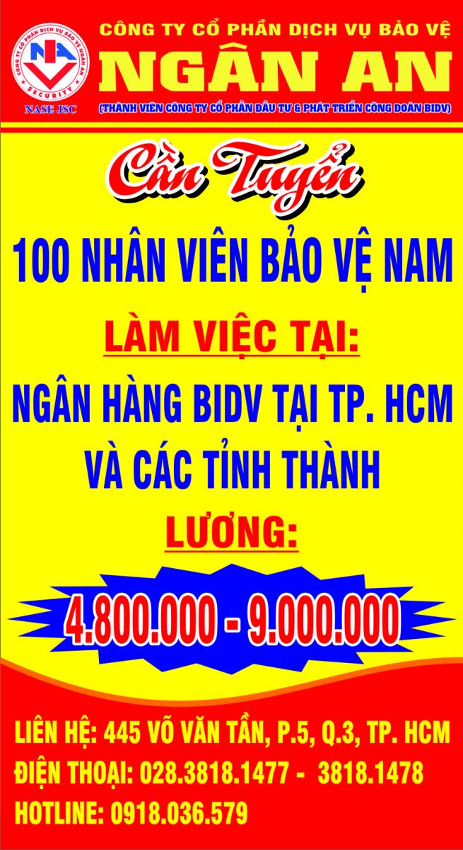 CẦN TUYỂN : 100 NHÂN VIÊN BẢO VỆ TẠI NGÂN HÀNG